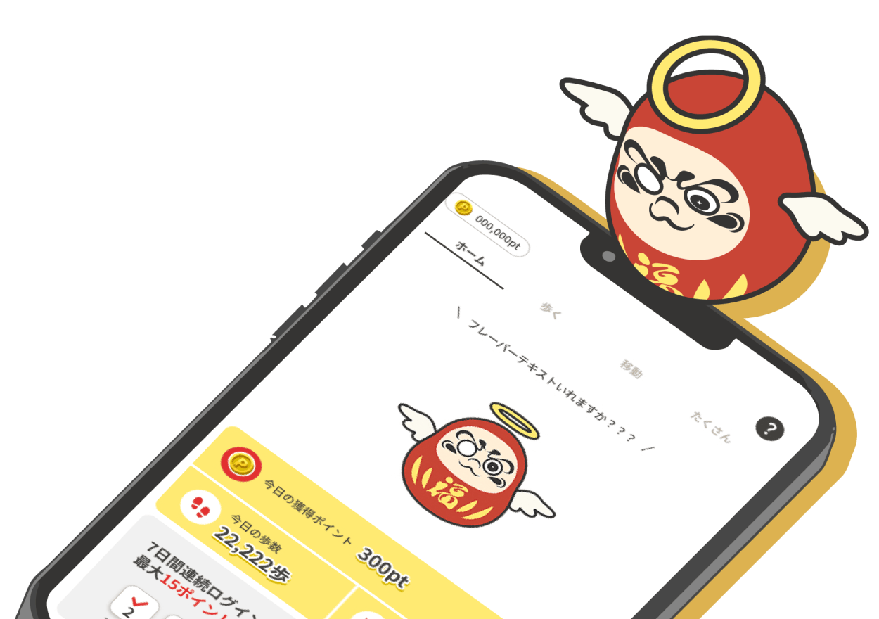 応募ポイントは歩く、移動、ゲーム、ミッション等、様々な方法で獲得できるよ!